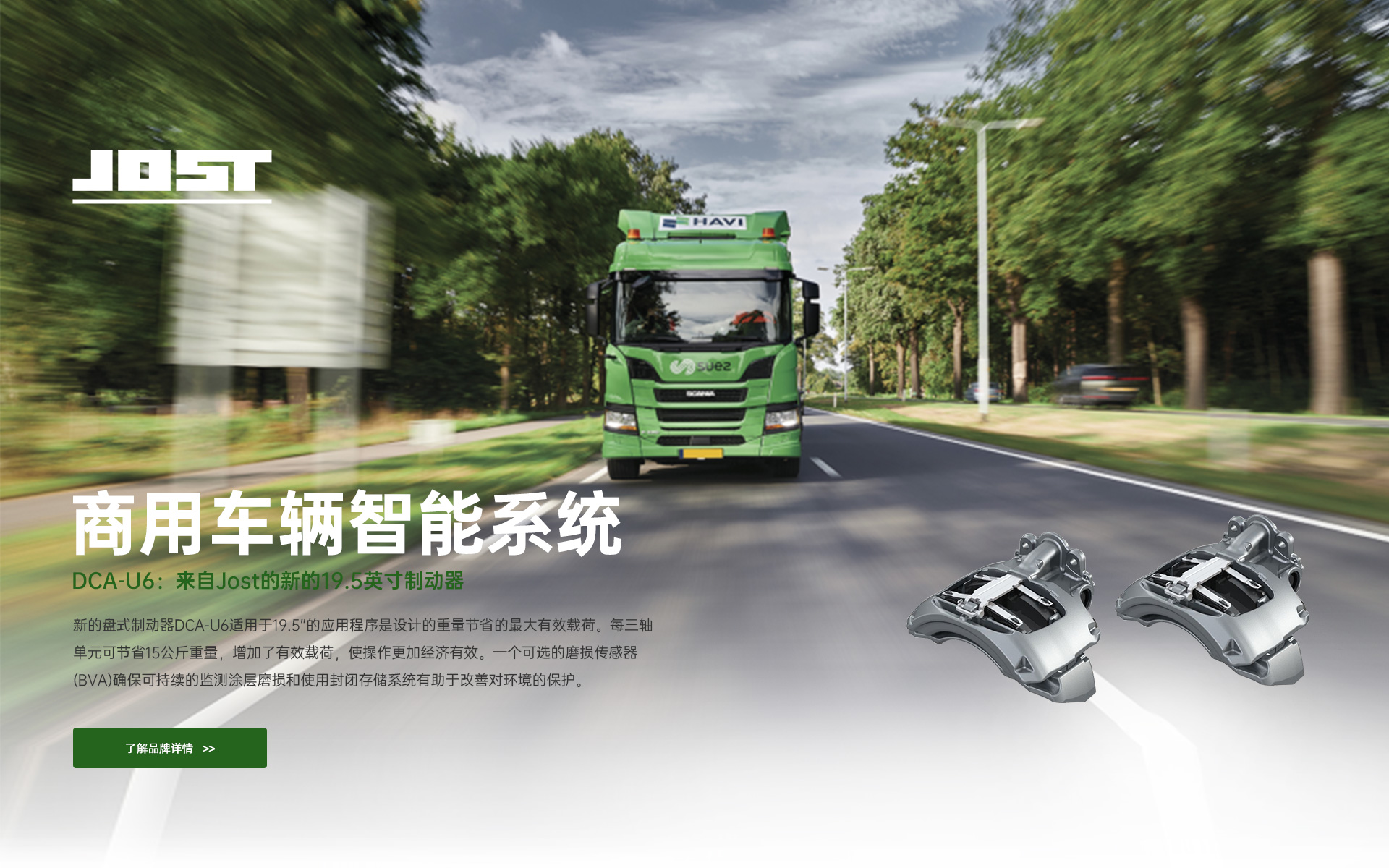 • 約斯特JOST公司于1952年成立于德國法蘭克福。作為全球領先的生產商和供應商,提供以安全為核心的卡車和掛車零部件系統。約斯特主要提供三大零部件系統:卡車和掛車連接件,例如牽引座和支腿等產品;集裝箱和液壓缸等產品;卡車和掛車的車軸和主動轉向等產品。作為全球最知名的牽引座和支腿供應商之一,約斯特憑借其產品的卓越性能表現,贏得了各大廠商的信任。